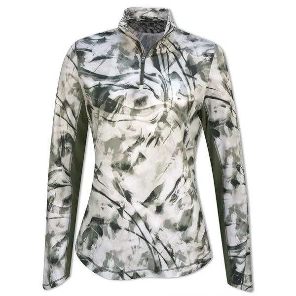 Designed with Nature Print with green and white brush stroke pattern featuring a zip closure. Created with Callaway’s Opti-Dri stretch fabric and mesh ventilation.